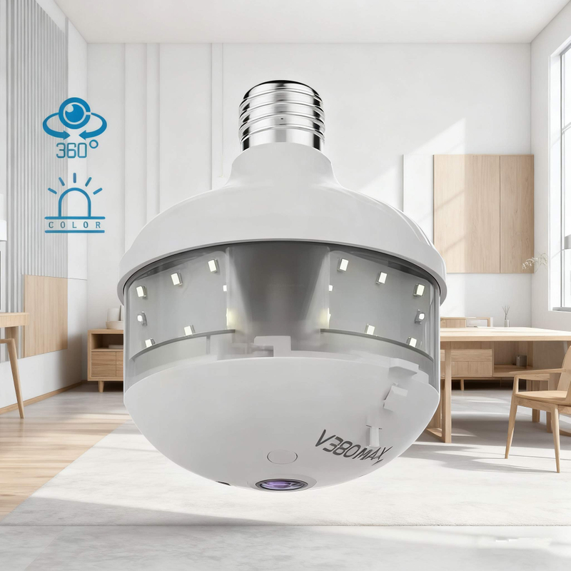 | BSUMWELL 3MP Fisheye 360° Panoramic Camera: E27 plug-and-play, 2-in-1 light & monitor, two-way audio, night vision, motion detection. TF/cloud storage, V380 Pro APP, CE/FCC/ROHS certified | |||||||||