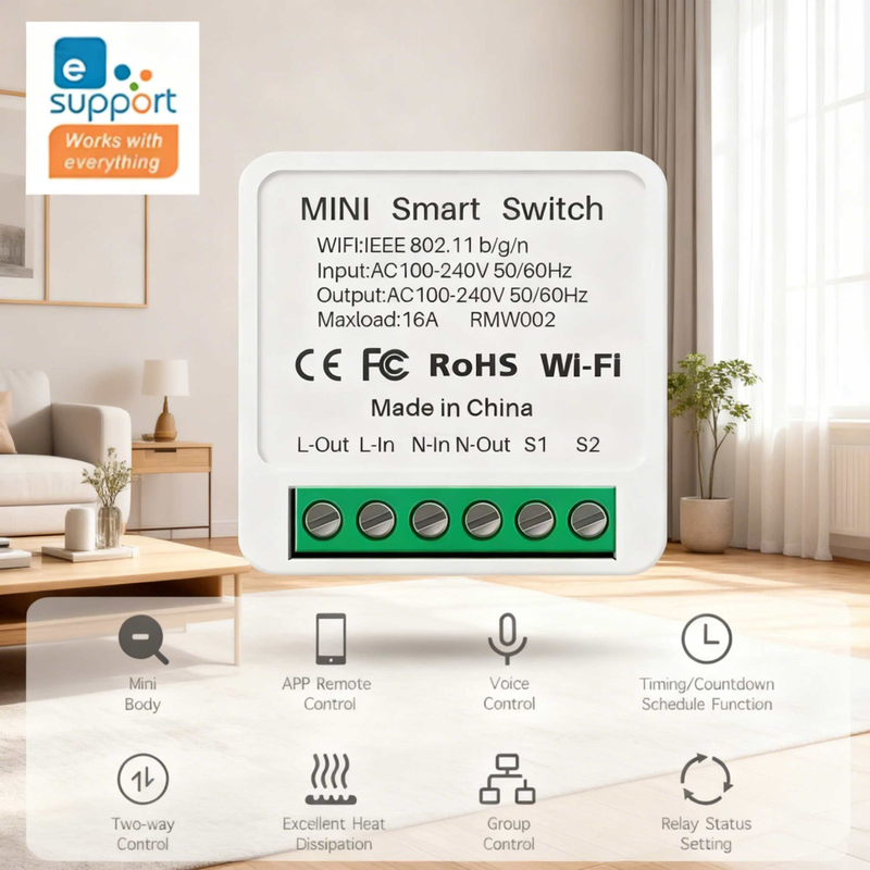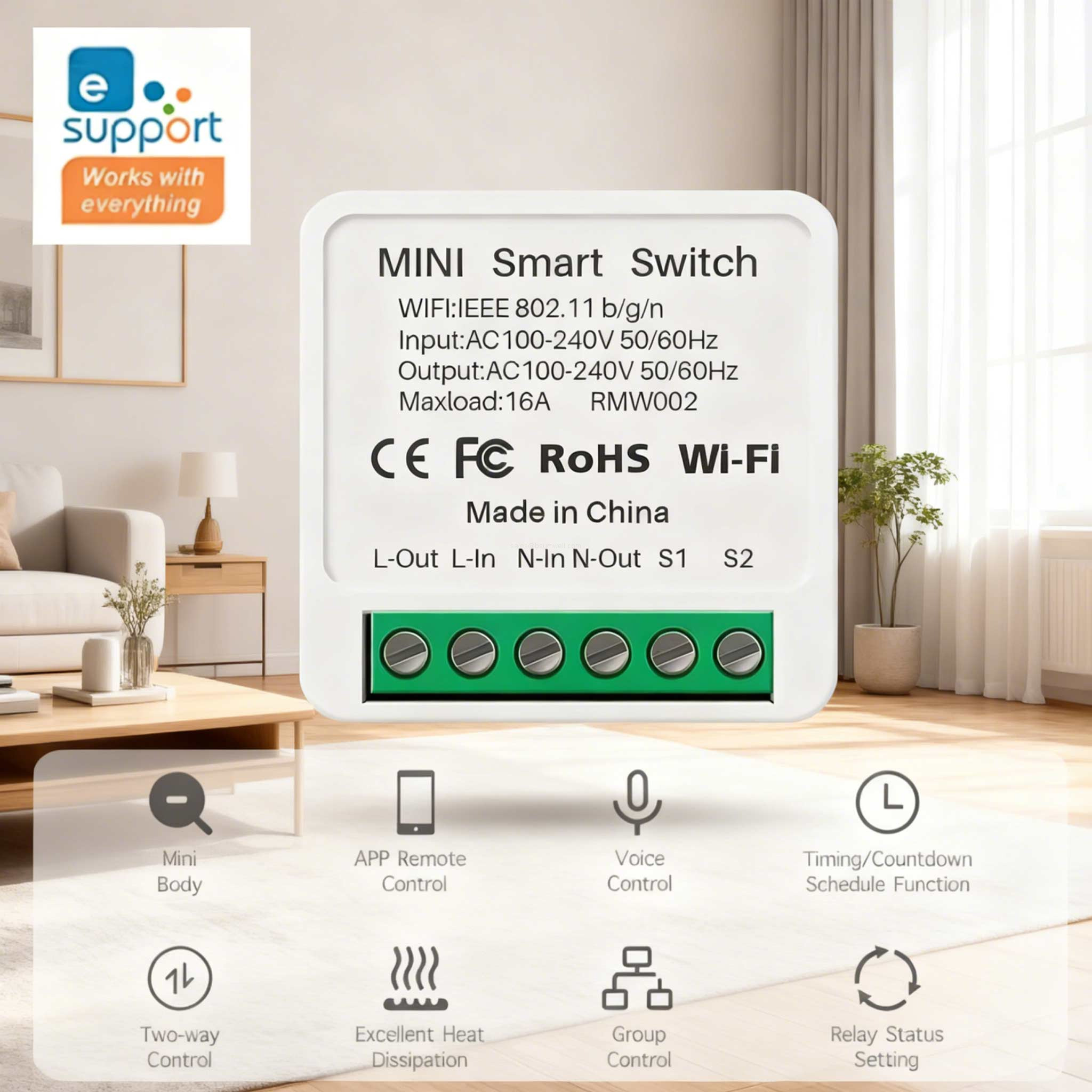 | Matter 16A Mini Smart Wifi Switch: WiFi timer, countdown, wireless remote, flame retardant. eWelink support, 16A for most appliances/lighting. | |||||||||