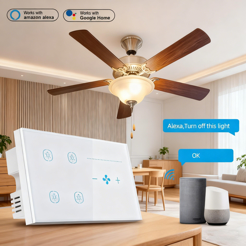 4Gang+1Fan Smart Switch - Intelligent speed control / mobile phone timer / voice control